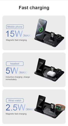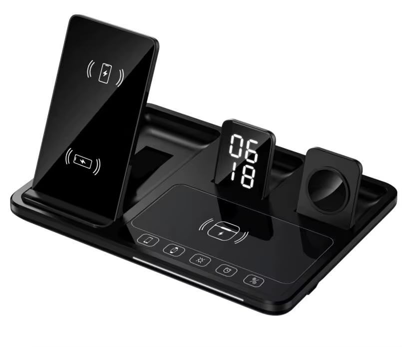 Generic - 3 in 1 Wireless Charger with LED Digital Watch – Multi Device Charging Dock for Phone, Smartwatch, AirPods – Stylish Desk Organizer with No Messy Cables