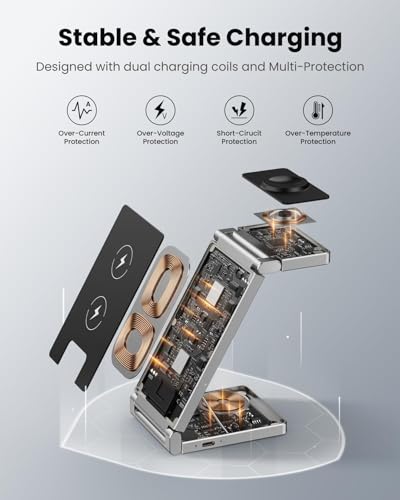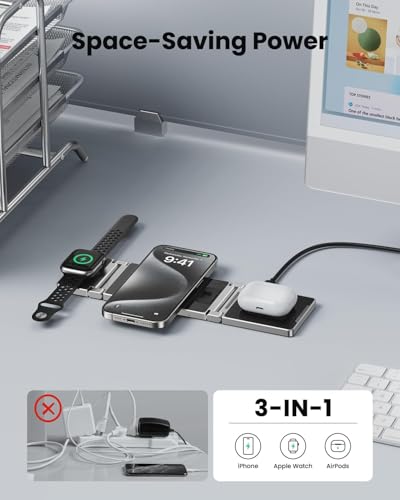 ecosystem - 3 in1 Wireless Charging Station, Fast Wireless Charger Travel Accessories for iPhone 16/15/14/13/12 X Pro Max, [Foldable & Double Coil] Compatible with Apple Watch Ultra 10/9/8/7/6/5 Airpods 4/3/2/Pro