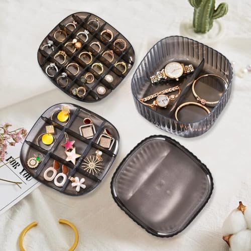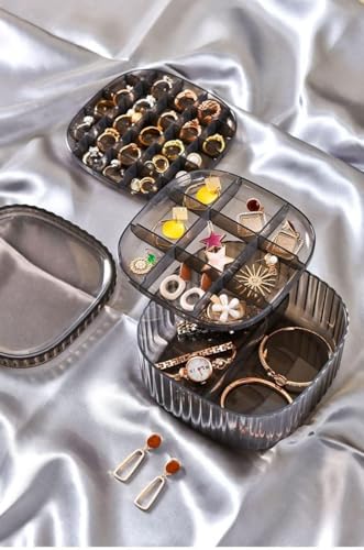 - 【3 Layer Tray】:This acrylic jewelry storage box has 3 layer tray with 36 grids,suit for display your pretty earrings,necklaces,rings,watches,brooches,bracelets.