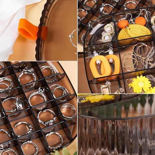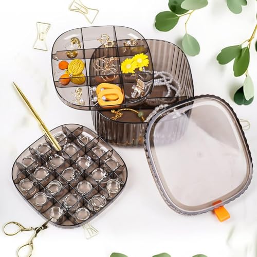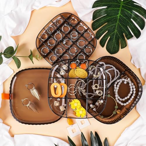 Happy Home - 3 Layer Clear Jewelry Box Organizer for Women Girl - Stackable Storage Jewelries Case Trays with Lid for Necklaces, Bracelets, Bangles, Rings, Earrings, Watch (Amber brown)