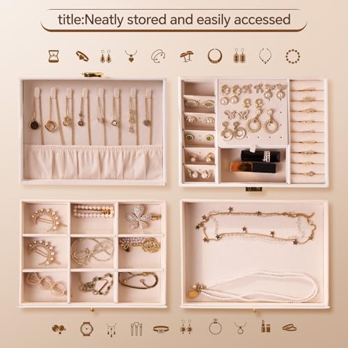- 【Best Gifts for Her Women】Our exquisite jewelry box is the perfect valentine gift for women and girlfriend, making it the best choice for any occasion like Christmas, Mother's Day, birthdays, weddings and Valentine's Day, with the timeless appeal of this jewlery organizer, versatile functionality, and thoughtful organization, offering a captivating and sentimental present that will be cherished and adored, becoming a shining star in their room decor and a symbol of your affection for the remarkable women and moms in your life.