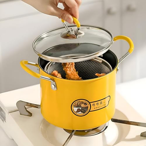 - The complete set includes the pot, glass lid, mesh basket, and durable stainless steel handle—all integrated into one compact, space-saving unit—eliminating the need for multiple tools and ensuring everything you need for efficient frying is right at hand.