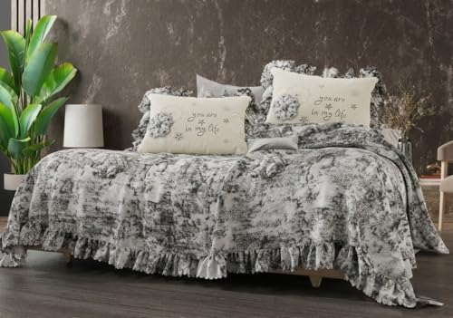 Generic - طقم مفرش سرير كبير 3 قطع بتصميم MASTIC مع ورد بارز ، تركواز ، تتضمن مفرش 230 * 240 سم و 2 غطاء خددية 55 * 75 سم (رماى)