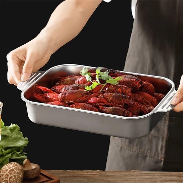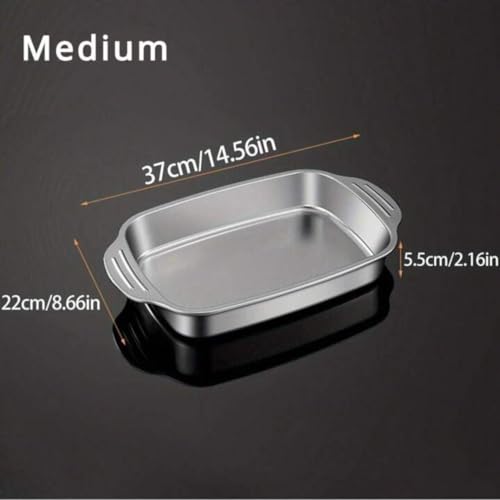 Generic - طاجن فرن مستطيل معدن مقاوم للصدأ متوفر 3 مقاسات مثالي للطهي والتقديم استخدامات متعددة MO