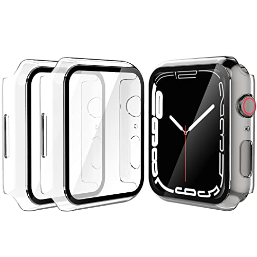 Bigqin - 3 Pack Bigqin Hard PC Case For Apple Watch Series 7 45mm, Built in Tempered Glass Screen Protector Overall Thin Protective - Clear