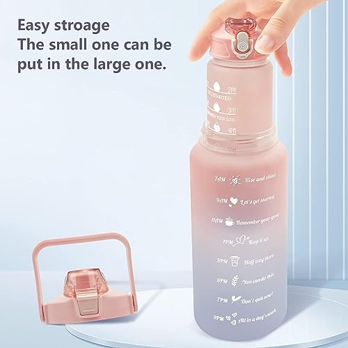 - 💗💗 مجموعة من 3 زجاجات مياه - تأتي مجموعة زجاجات المياه ذات الألوان المتدرجة في 3 قطع (ملاحظة: زجاجتين مياه صغيرتين داخل الزجاجة الكبيرة)، اقتباسات تحفيزية، قياسات السعة الخلفية، في كل مرة ترى فيها أو تفكر فيها، سوف تشرب تلقائيًا وسهولة للوصول إلى هدفك اليومي.