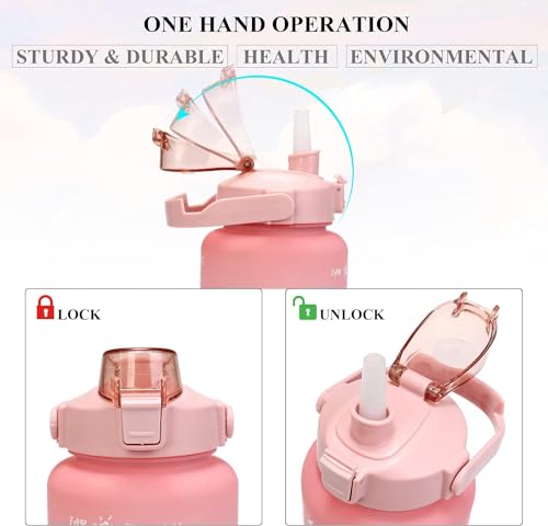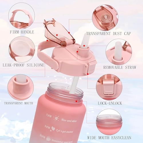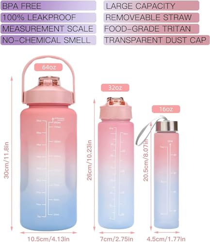 Generic - زجاجة مياه رياضية تحفيزية مع شفاطة، مانعة للتسرب بسعة 2 لتر للرياضة والجيم والسفر، خالية من مادة البيسفينول أ، وردي متدرج، 3 قطع، سعة 473 مل و946 مل و1.89 لتر