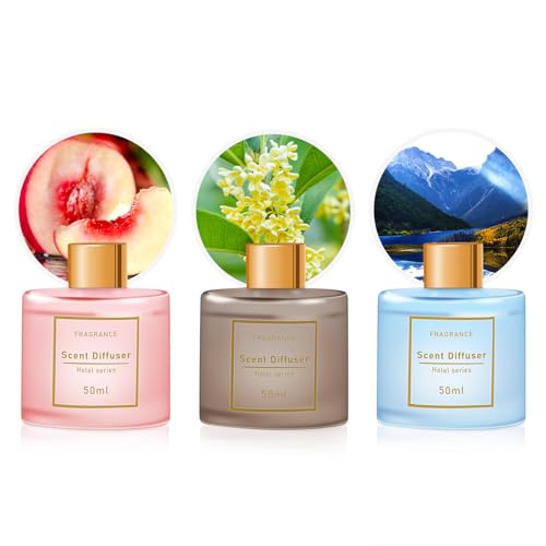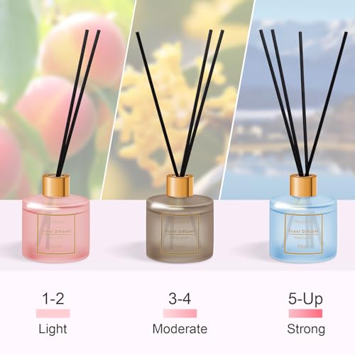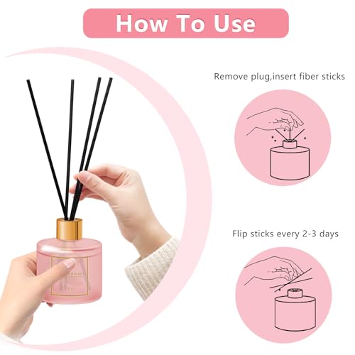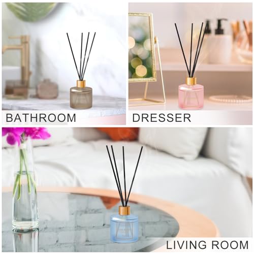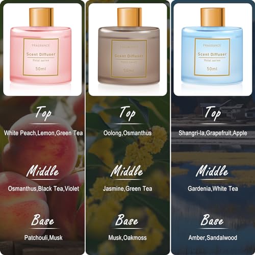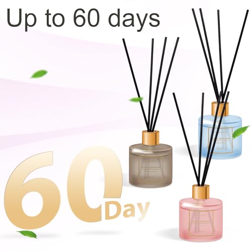 DIUFJAG - موزع روائح القصب مع 12 عصا من الفايبر برائحة الخوخ الأسود ونبات العبقة الأسود وشانجريلا يدوم حتى 60 يوم للمنزل، 50 ملليلتر، 3 عبوات
