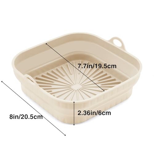 - [Universal Fit & Wide Compatibility] - With an 8-inch square design and built-in handles, these silicone liners fit most 3–6.8 QT air fryer models including Ninja, Cosori, Ultrean, Gourmia, and more. Also suitable for use in ovens, microwaves, and steamers.