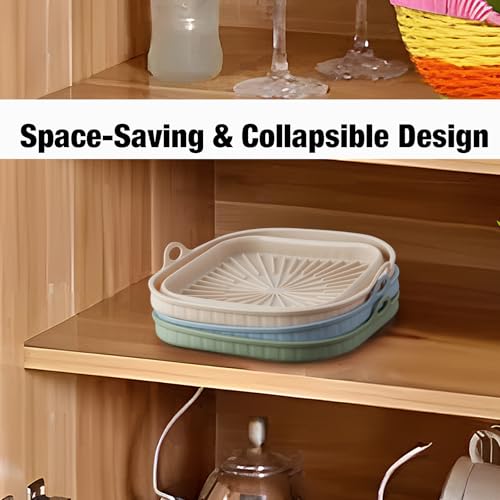 Emptycolor - 3 Pack Silicone Air Fryer Liners Reusable– Emptycolor 8 Inch Square Silicone Liners for Air Fryer Basket, Non-Stick Heat Resistant Airfryer Silicone Pot Basket for 3QT–6.8QT, Oven & Microwave