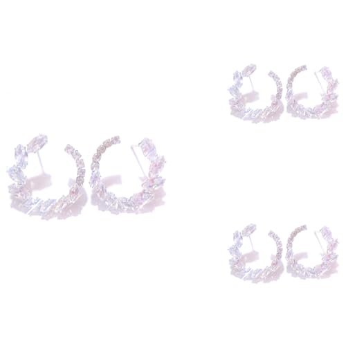 Generic - 3 Pairs Women's Silver Small Hoops Earrings with Two Lobes