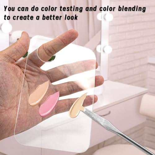 - Easy to use and clean: This vanity board is easy to use. First, peel off the protective film on the acrylic makeup palette, then use a foundation spatula to spread the liquid foundation onto the foundation palette and mix evenly, then apply it on the face, and finally pat it gently with a powder puff, repeat 2-3 times to easily create a light makeup base. Can be cleaned with paper towels or water.