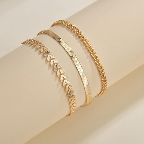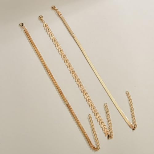 HUASAI - 3 قطع خلخال للنساء الذهب ورقة الكاحل سوار قابل للتعديل الصيف خلخال أساور للفتيات في سن المراهقة