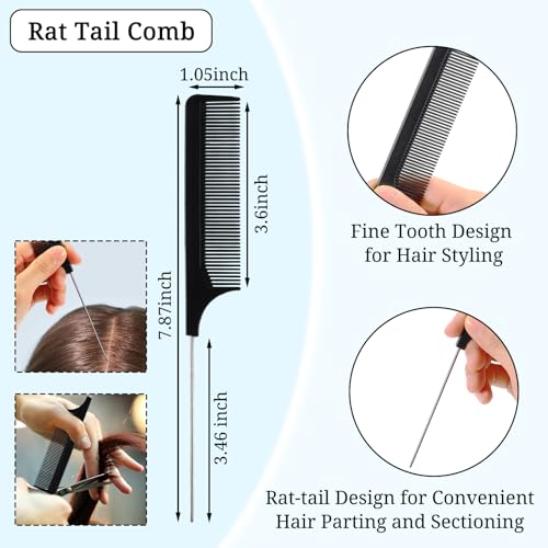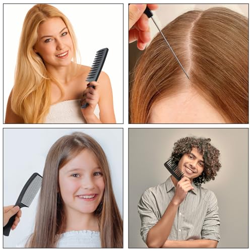 - Three Styles: A wide-tooth comb, a medium-tooth comb, and a fine-tooth rat tail comb, each designed with its unique features. The variety of tooth spacing offers versatile styling options, catering to all your hair needs, allowing you to detangle, style, and groom your hair more easily and efficiently