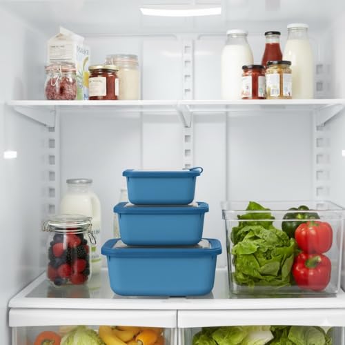 Generic - 3 Pcs Rectangular Food Storage Container Set with Snap Lids – Series BPA-Free Airtight Bowls (600 ml, 1100 ml, 1800 ml) Microwave-Safe Bowl only without the lid (BLUE)