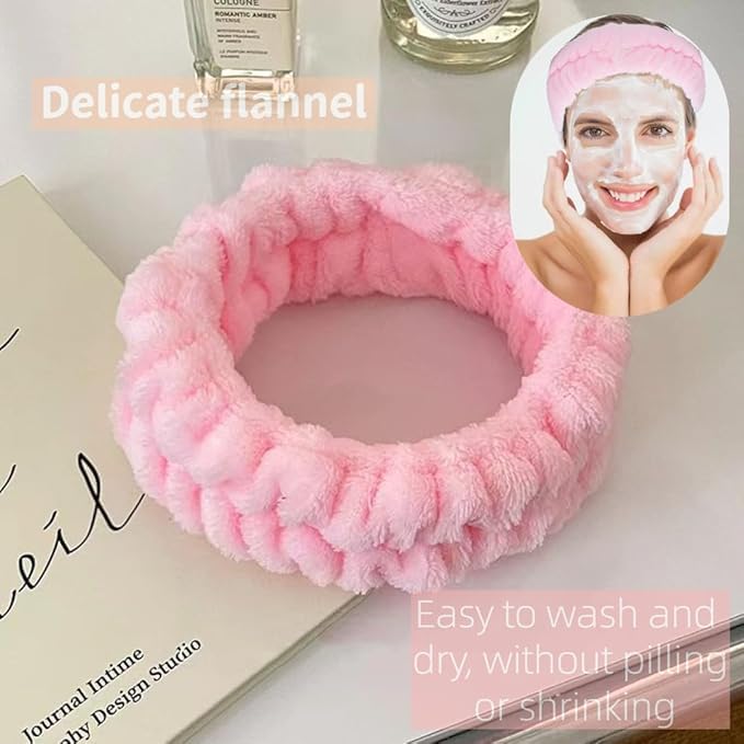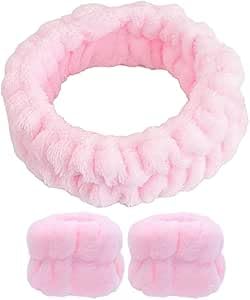 Generic - 3 Pcs Spa Face Wash Set,Plush pink Headbands for Women for Washing Face & Wrist Towels for Washing Face - Soft Skincare Hair Accessories