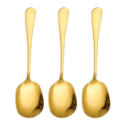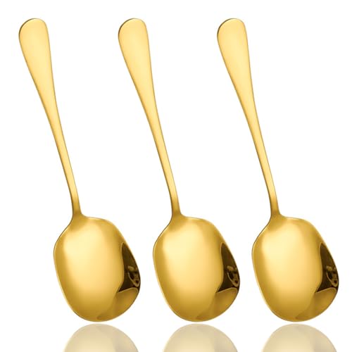 GSDGV - 3 قطع ملاعق تقديم بوفيه كبيرة من الستانلس ستيل، ملاعق تقديم ذهبية للسلطة بمقبض طويل، (21.7 × 6 سم)، امنة للغسل في غسالة الصحون، ملاعق كبيرة للمطبخ والمطعم والبوفيه والولائم