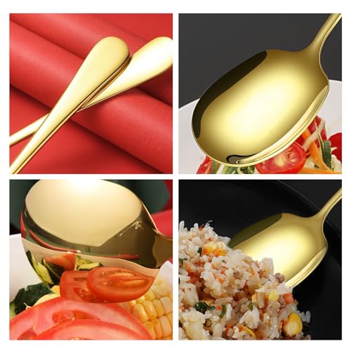 - 【مادة فاخرة】ملاعق التقديم الذهبية مصنوعة من الستانلس ستيل الفاخر، قوية ومتينة، صلابة عالية، مصقولة، سطح أملس ومقاوم للصدأ، قوة ومتانة جيدة، لن تتشوه أو تنكسر حسب الرغبة، يمكن استخدامها لفترة طويلة.