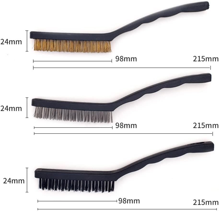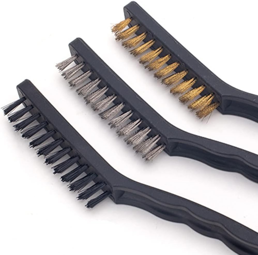 - 3 piece variety set: includes copper bristle brush, steel bristle brush and black bristle brush to meet different cleaning needs from removing rust, dirt, and old paint