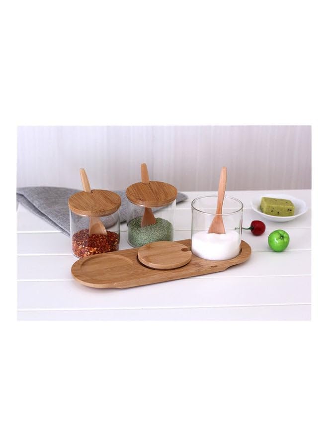Generic - برطمانات تخزين طعام زجاجية محكمة الغلق مع غطاء خشبي من 3 قطع، شفاف/ بني، 29 × 9.8 مل