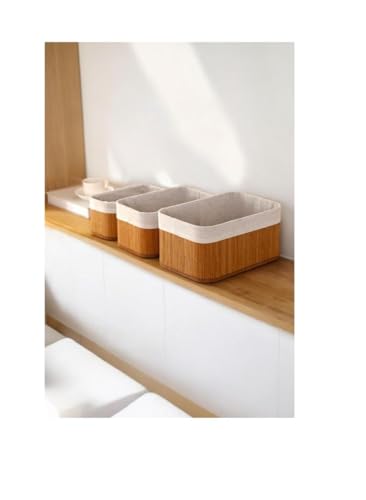 generic - 3 Piece Bamboo Basket Set with Washable Fabric Cover - Stylish Versatile Design for Organizing Books and Towels L