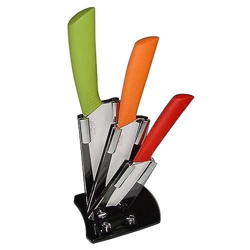 - 3-Piece Ceramic Knife Set With Holder - Multi-Color