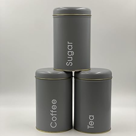 Generic - برطمانات تخزين من المعدن، مجموعة من 3 قطع، سعة 1450 مل، لحفظ القهوة والسكر والشاي