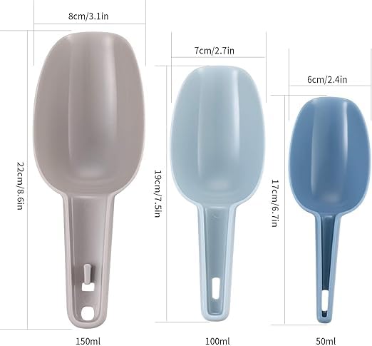Generic - مجموعة مغارف مكونة من 3 قطع، مغرفة الطعام الجاف والبودرة وحبيبات القهوة، والفشار، والحلوى، والذرة، وطعام القطط والكلاب، كوب معايرة، يمكن غسلها في غسالة الأطباق، خالية من مادة بيسفينول أ ( ألوان متعدده