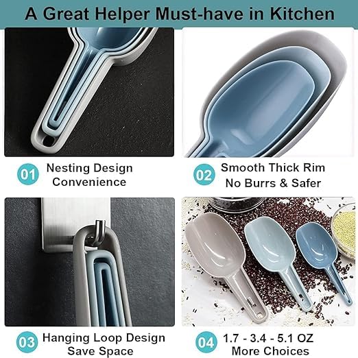 - 【مقاسات متعددة - 1.7/3.4/5.1 أونصة】 مع 3 مقاسات مختلفة لتلبية احتياجاتك المختلفة، فإن مغرفة الايس كريم وحبوب القهوة هذه ذات المقبض الطويل مثالية للاستخدام في المطبخ والحديقة والحفلات والبوفيه والتخييم ومتجر البقالة والمزرعة. مساعد رائع لا غنى عنه في المنزل والمطبخ.