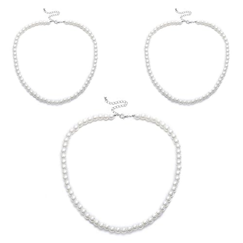 Generic - 3 Pieces White Imitation Pearl Necklace Round Narrow Necklace Fashion Jewelry Gifts for Unisex