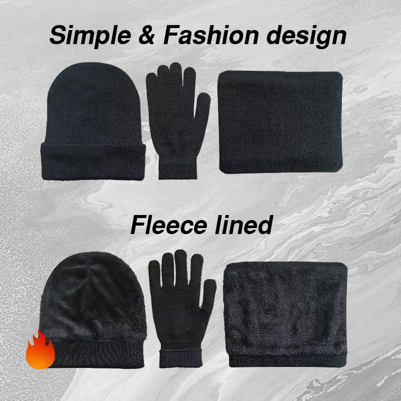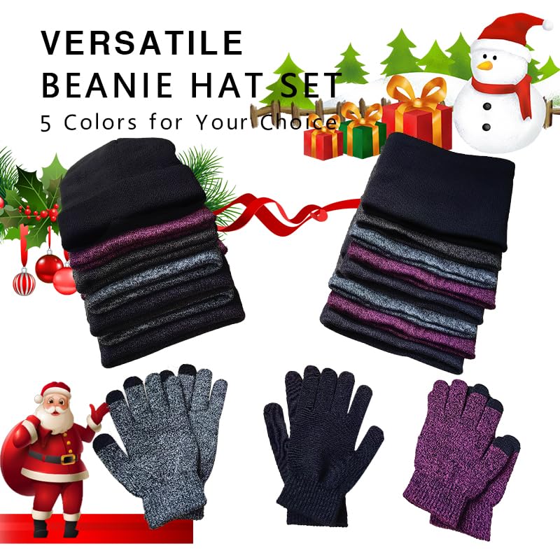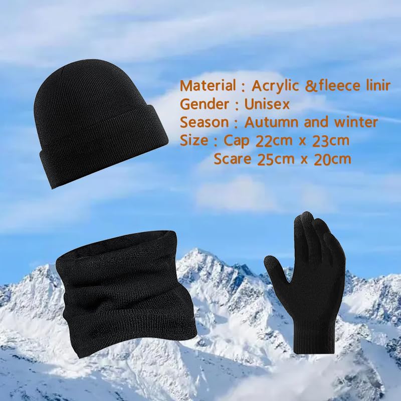 AHXN - 3-Pieces Winter Beanie Hat Scarf Touchscreen Gloves Set for Men and Women, Warm Knit Fleece Lined Cap Set