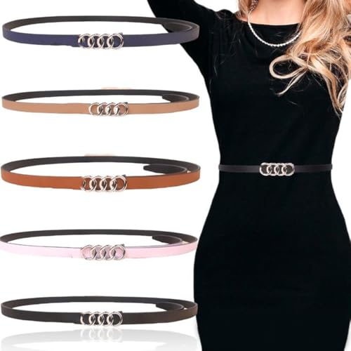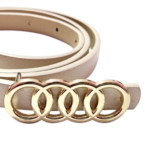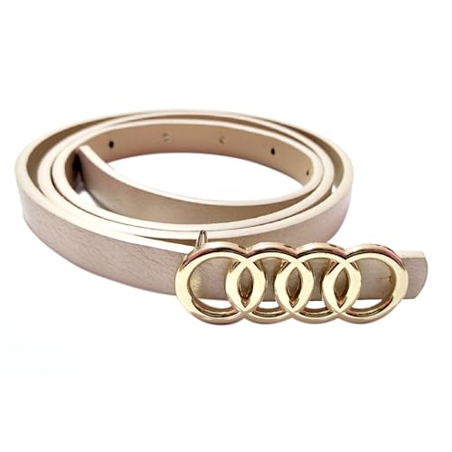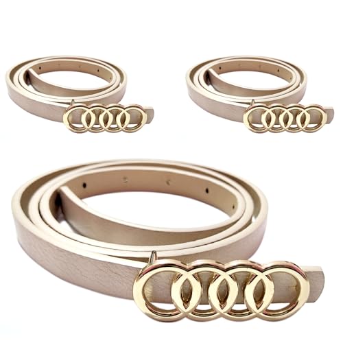 Generic - 3 Pieces Women's Thin Leather Belt Gold Metal Buckle Beige Leather 01202611001
