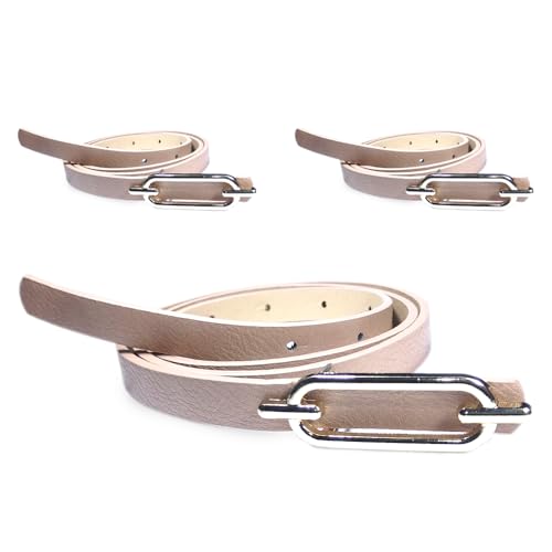 Generic - 3 Pieces Women's Thin Leather Belt Gold Metal Buckle Cashmere Leather 01202611005