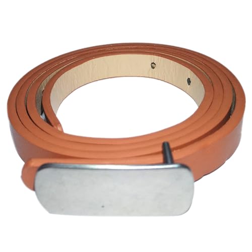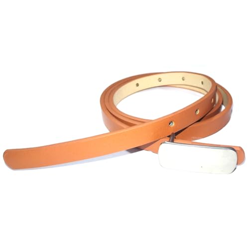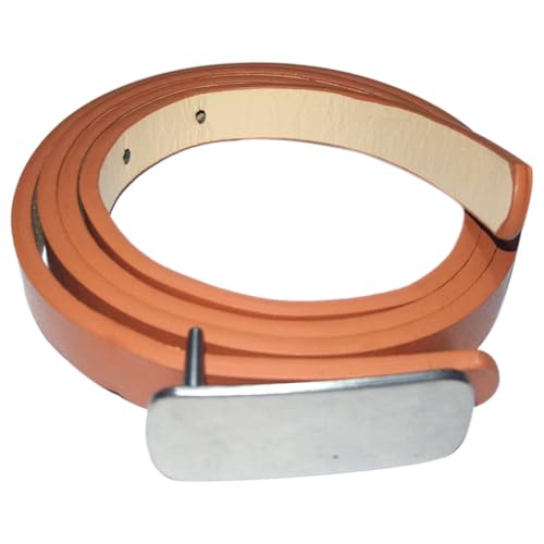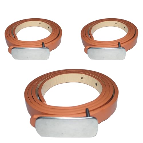 Generic - 3 Pieces Women's Thin Leather Belt Silver Metal Buckle Brown Leather 01202611003
