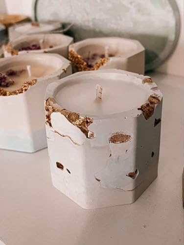 Generic - ٣ شموع معطرة مع بوت كونكريت مودرن هاندميد (ابيض وذهبى)