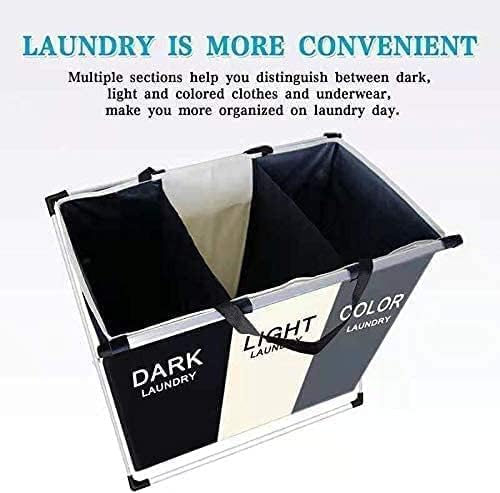 Generic - 3 Section Laundry Hamper, Foldable Waterproof Laundry Basket with Aluminum Frame, 135L Premium Design for Sorting Dark, Light and Colored Clothes, Bathroom and Bedroom