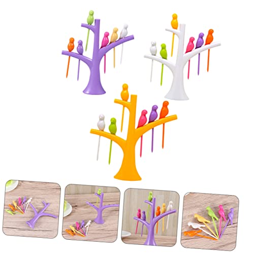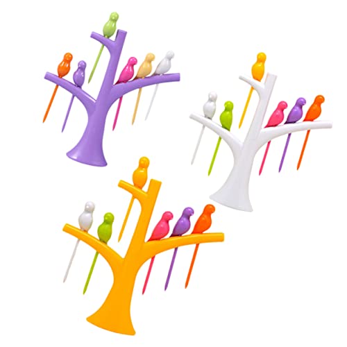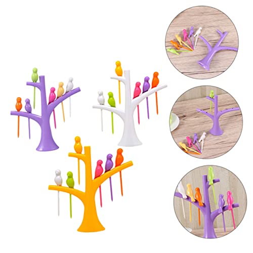 RORPOIR - مجموعة شوك فواكه على شكل طيور بلاستيك، أعواد أسنان وشوك لانش بوكس بنمط بنتو، أعواد طعام على شكل حيوانات، شوك وأعواد فواكه، زينة أدوات مائدة للحفلات، عبوة 3 مجموعات