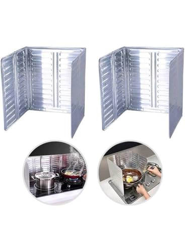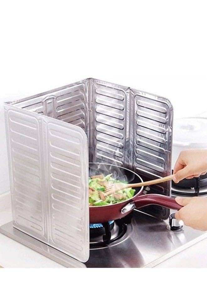 generic - 3-Sided Oil Splash Guard for Stovetop Protection, Non-Stick Aluminum, Foldable for Use While Cooking - Silver