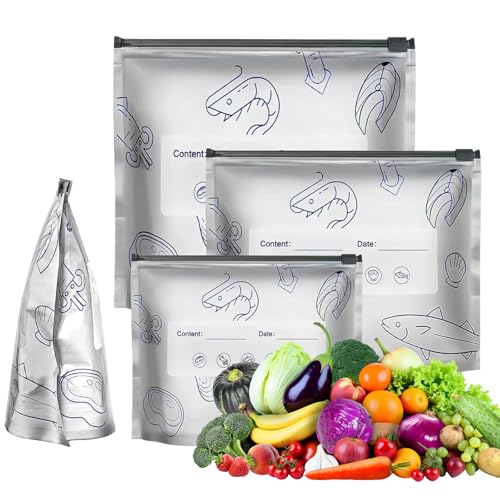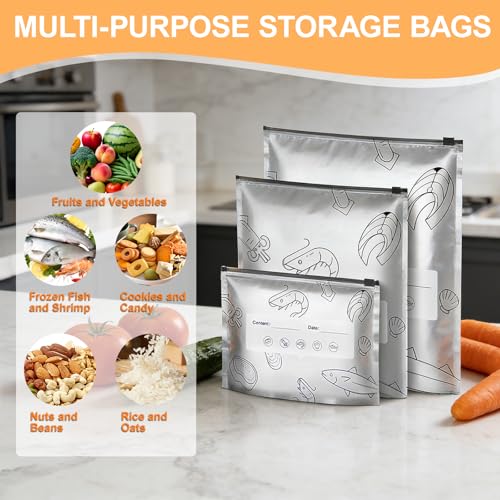 - 【 HIGH-QUALITY FOOD FRESHNESS PRESERVATION】These reusable, sealable zip lock bags are made from premium, durable aluminium foil. Their reflective properties help maintain the freshness of fruits, vegetables, meats, and snacks by minimising moisture loss and light exposure, which can support a longer shelf life for your everyday groceries
