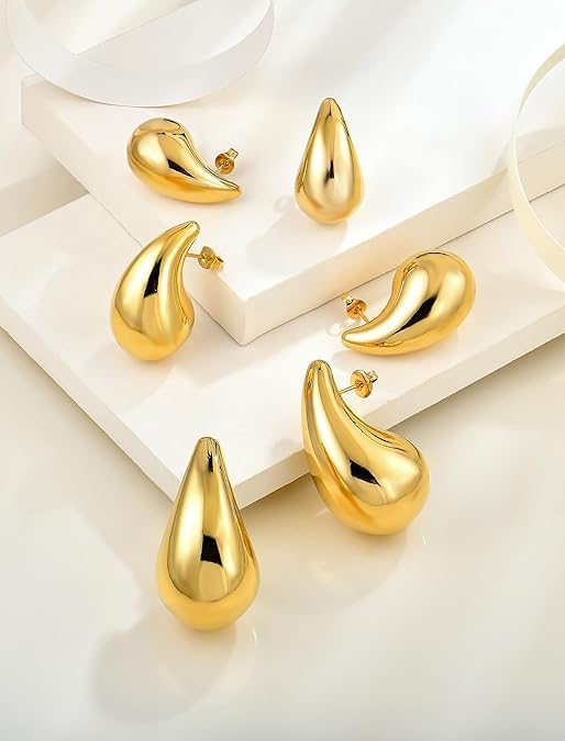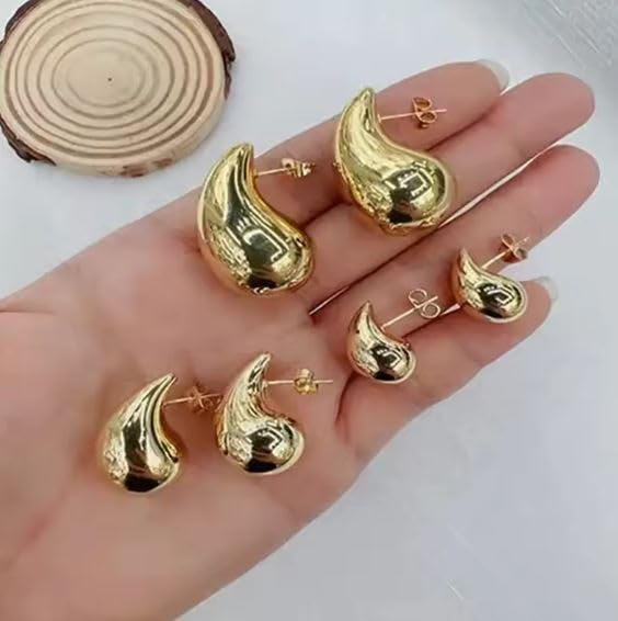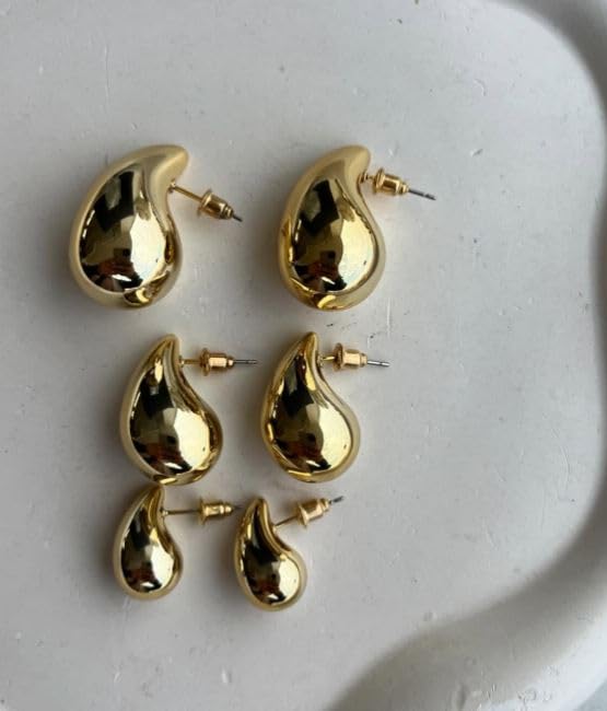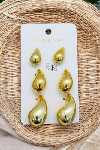 Generic - 3 Sizes Gold Dangle Earrings for Women, Fashion Chunky Hypoallergenic Jewelry, Lightweight Hoop Earrings Set S M to L