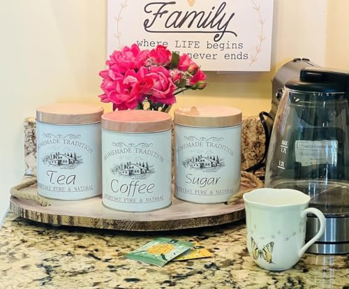 - DOLLAR 3 Piece White Round Sage Box Set with Wooden Lid for Tea, Sugar and Coffee
