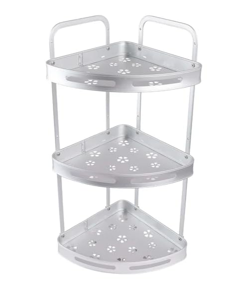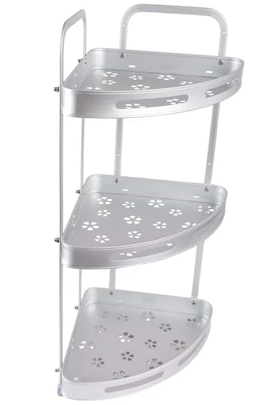 Generic - 3-Tier Aluminum Corner Shampoo Holder, Silver Bathroom Storage Organiser with Flower Pattern Design
