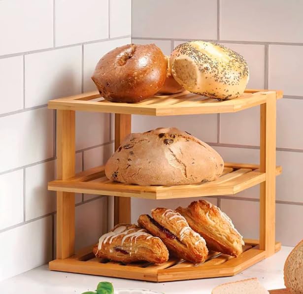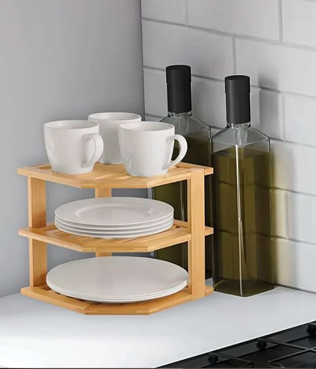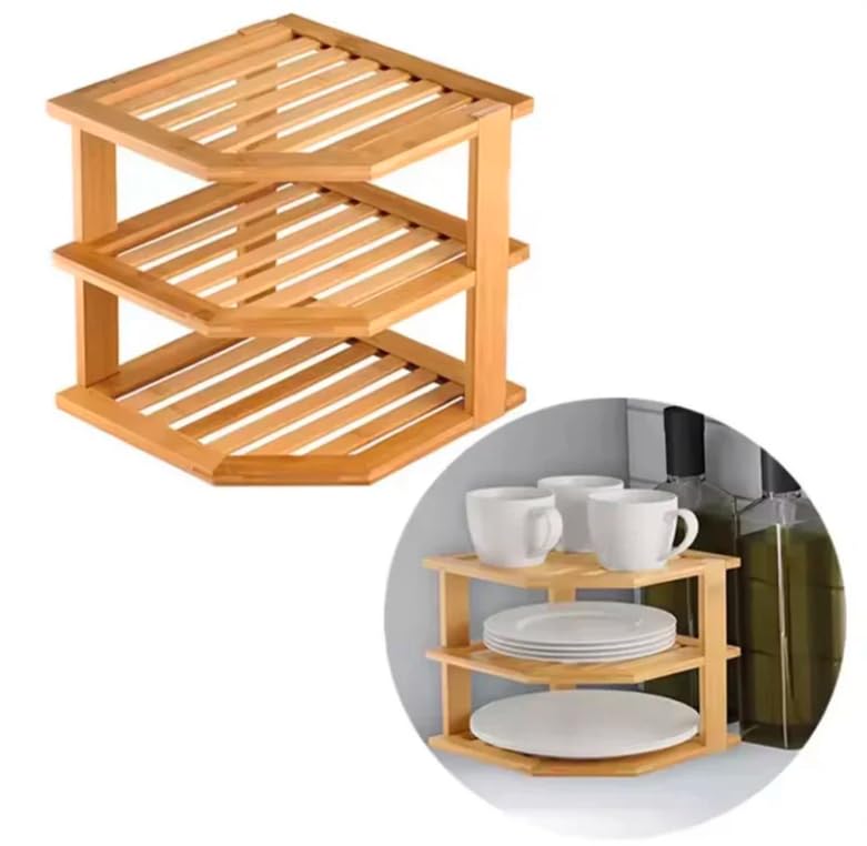 Generic - رف منظم مطبخ من خشب البامبو مكون من 3 طبقات، حامل تخزين من الخشب الطبيعي، مقاس 23 × 26 سم
