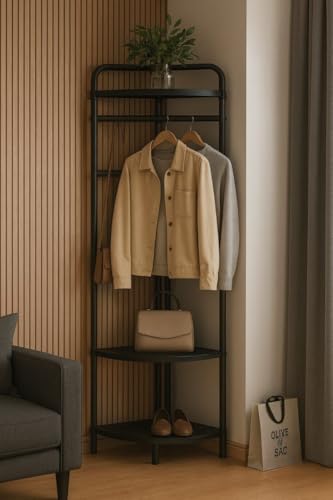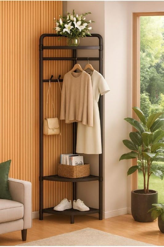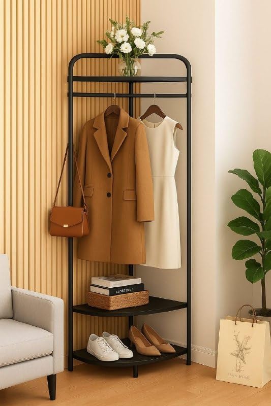 Generic - رف ملابس من 3 طبقات مع رف احذية - تصميم عملي يناسب جميع المساحات، يساعدك على تنظيم الملابس والمعاطف والاحذية بسهولة