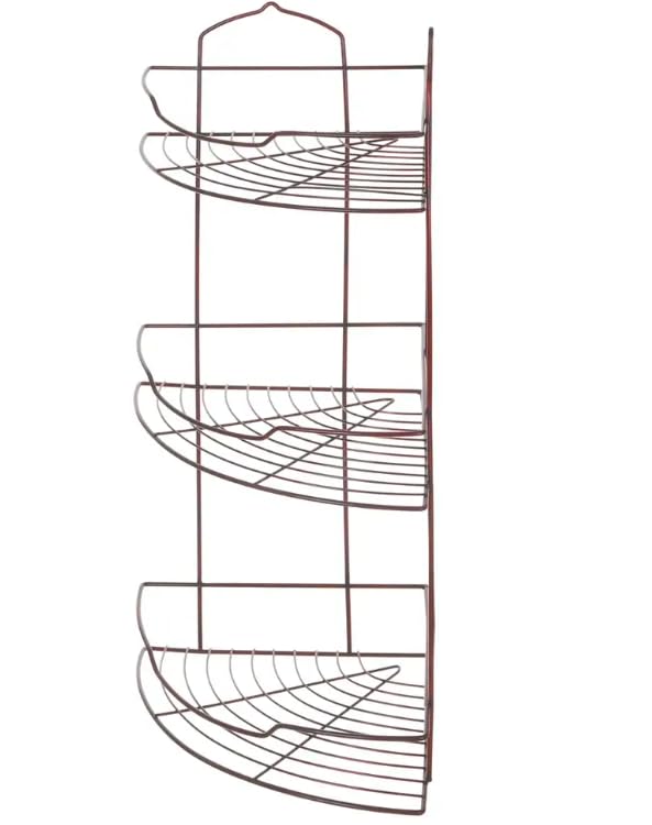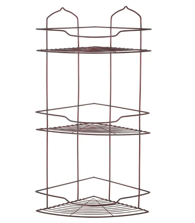 Generic - 3-Tier Corner Bathroom Shelf, Dark Red Wire Storage Organiser, 57x32x32 cm