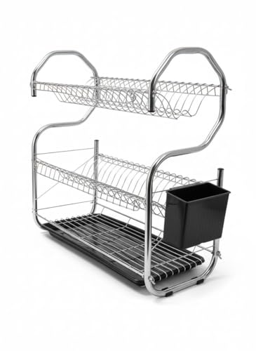 Generic - رف تجفيف الاطباق من 3 طبقات، لمسة نهائية من الكروم، مع صينية تقطير وحامل ادوات المائدة، 60 سم × 25 سم × 60 سم