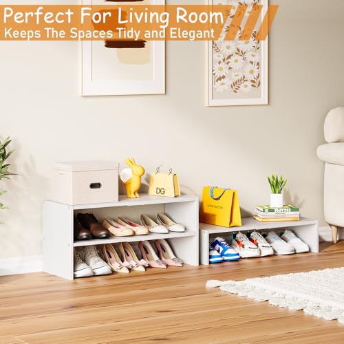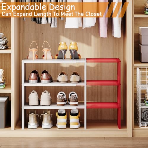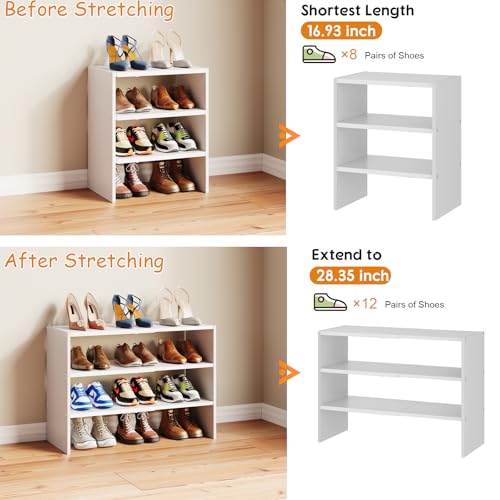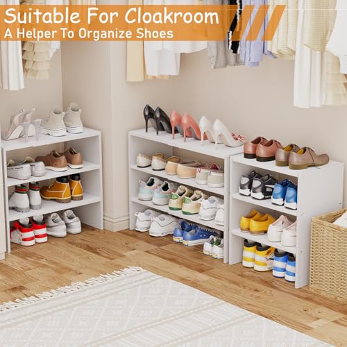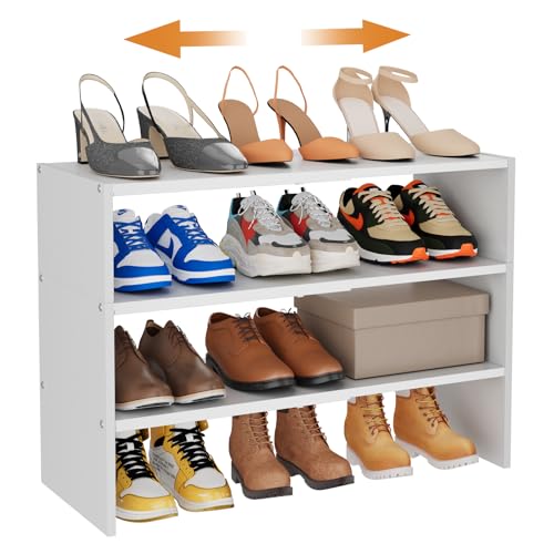 Hencawima - منظم احذية ابيض قابل للتوسيع من 3 طبقات للخزانة، رفوف احذية قابلة للتكديس، ارفف احذية صغيرة من الخشب المعدني للخزائن والمدخل والباب الامامي والمساحات الضيقة والممر، 8-16 زوج