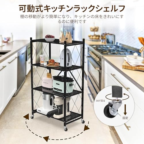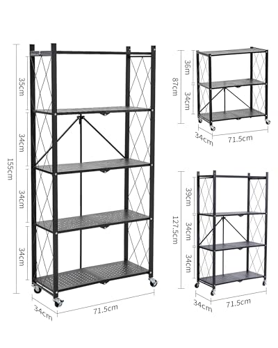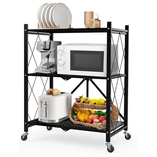 AEEZO - رف قابل للطي من 3 طبقات، رف تخزين، رف ستيل، رف مفتوح، رف متحرك، رف معدني، رف قابل للطي، رف متحرك، رف متحرك، رف مطبخ قوي، قابل للطي، معدن