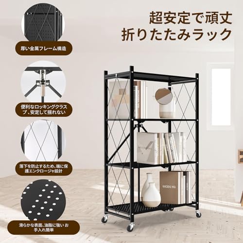 - تخزين نحيف وقابل للطي: يتميز الرف بتصميم قابل للطي يسمح بتخزينه بشكل نحيف عند عدم الاستخدام. السُمك 3.1 انش (8 سم) فقط بعد الطي. وهذا يجعل من السهل تخزينها في شقوق الأثاث والخزانات والخزانات وأكثر من ذلك حتى تتمكن من الحفاظ على غرفتك أنيقة ومرتبة دون أن تشغل مساحة كبيرة