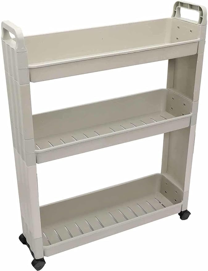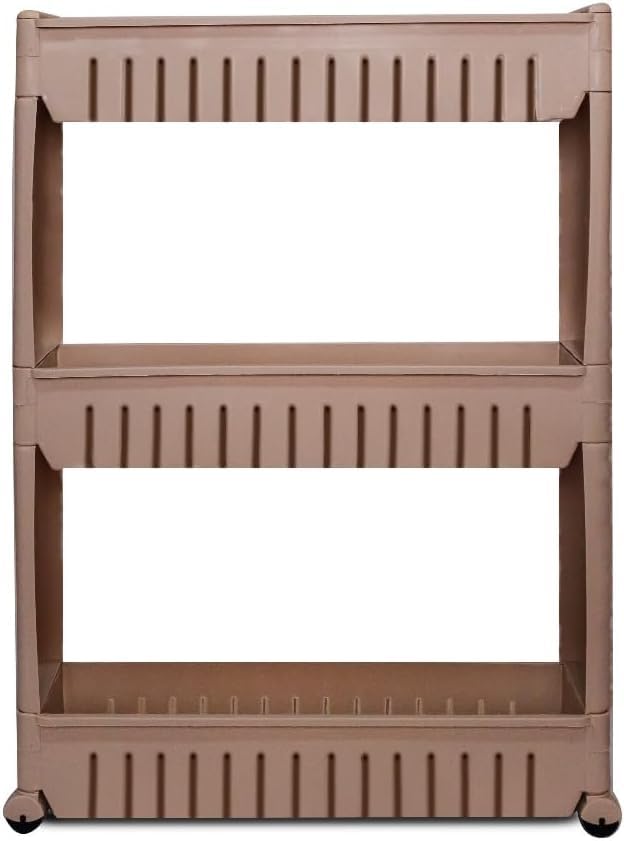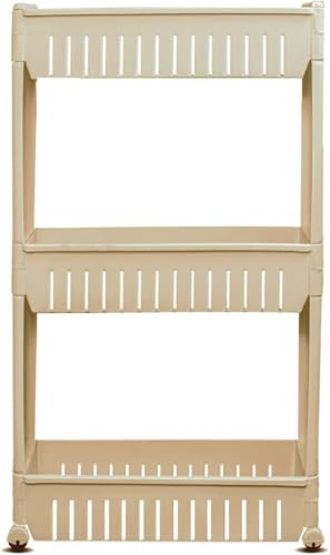 Generic - عربة تخزين متنقلة بـ 3 طوابق، منظم متعدد الأغراض من البلاستيك مع عجلات، لون بيج
